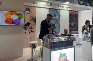 На коллективном стенде Томской области, организованном региональным центром поддержки экспорта в рамках президентского национального проекта «Международная кооперация и экспорт», представлены кондитерская продукция из дикоросов «Территория тайги», косметика и товары для детского творчества ООО «Новая химия», а также соусы и заправки IzumiFood.