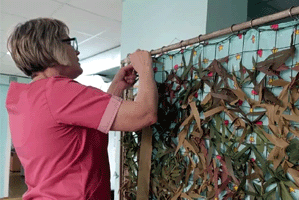 В томском детском центре восстановительного лечения сотрудницы освоили плетение маскировочных сетей для участников специальной военной операции; работу организовали в свободное время.