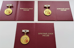 Закон «О донорстве крови и ее компонентов» предусматривает меры социальной поддержки для доноров, сдающих кровь безвозмездно, в том числе лиц, удостоенных званий «Почётный донор СССР» и «Почётный донор России». Звание может получить любой россиянин, безвозмездно сдавший кровь 40 и более раз. |