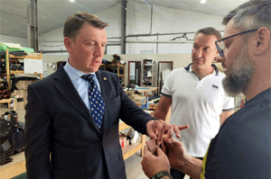Вице-губернатор ознакомился с производственными мощностями предприятия и новым цехом. Василий Потёмкин осмотрел новое оборудование, в том числе 15-тонный гидравлический пресс, благодаря которому удалось значительно ускорить изготовление сложных деталей для аксессуаров из кожи, лентонарезные и швейные машины различных конфигураций, двоильную и шерфовочную машины, предназначенные для снятия толщины кожи, лазерные станки и 3D-принтеры.