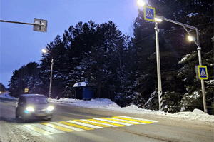 Как сообщили НИА Томск в администрации региона, светодиодные проекторы работают вместе с уличным освещением, дублируя бело-желтую разметку на проезжей части. Она хорошо видна в темное время суток и при неблагоприятных погодных условиях, независимо от яркости фар автомобилей, а пешеход становится заметным для водителей на расстоянии до 150 метров.