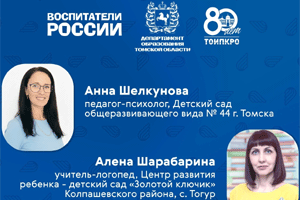 Победителями стали учитель-логопед Центра развития ребенка – детского сада «Золотой ключик» села Тогур Колпашевского района Алена Шарабарина (номинация «Лучший профессионал образовательной организации») и педагог-психолог детского сада общеразвивающего вида Nº 44 Томска Анна Шелкунова (номинация «Наставник – это призвание»).
