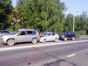 По предварительным данным, 42-летний водитель, управляя автомобилем Lexus LX470, не выдержал безопасную дистанцию и совершил столкновение с автомобилем Toyota Platz. После этого автомобиль Toyota Platz продолжил движение и совершил столкновение с попутным автомобилем Nissan X-Trail.