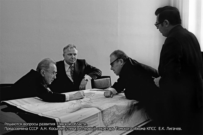 С 1965 по 1983 год Егор Лигачёв был первым секретарём Томского обкома КПСС. За эти годы под его руководством были реализованы крупные проекты в нефтяной, атомной промышленности, агропромышленном комплексе, образовании и культуре, которые значительно укрепили социальный и экономический потенциал Томской области. Построены города Стрежевой и Кедровый, появились вахтовые посёлков геологов, нефтяников и лесозаготовителей; аэро- и речные порты, мосты через Обь и Томь, новые автодороги, железная дорога Асино – Белый Яр, построен аэропорт Богашёво (1968), вступил в строй Томский нефтехимический комбинат, созданы крупные комплексы по производству молока, мяса, яиц, овощей. В Томске созданы филиалы АН СССР и АМН СССР, построены дворец спорта и драмтеатр, открыт художественный музей.